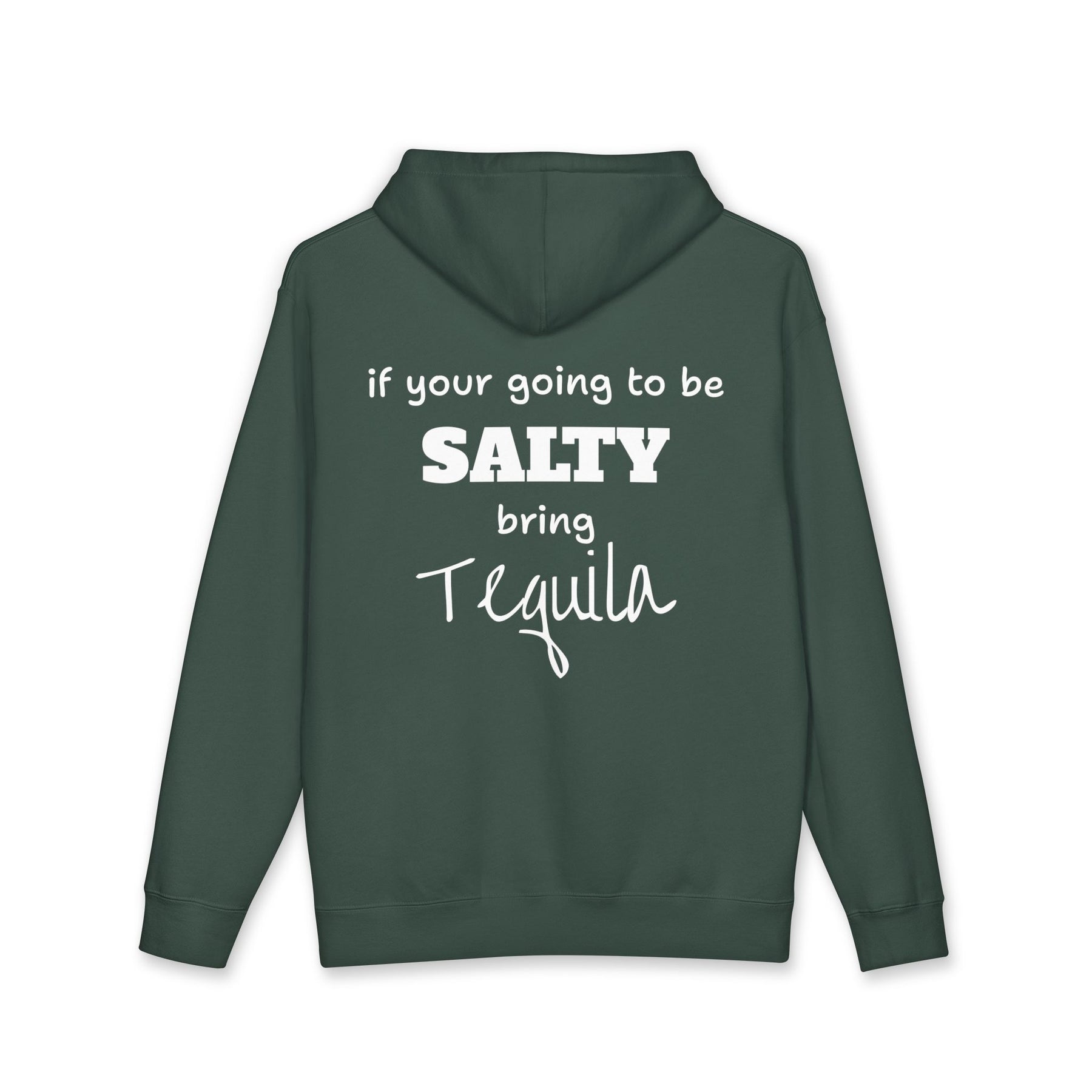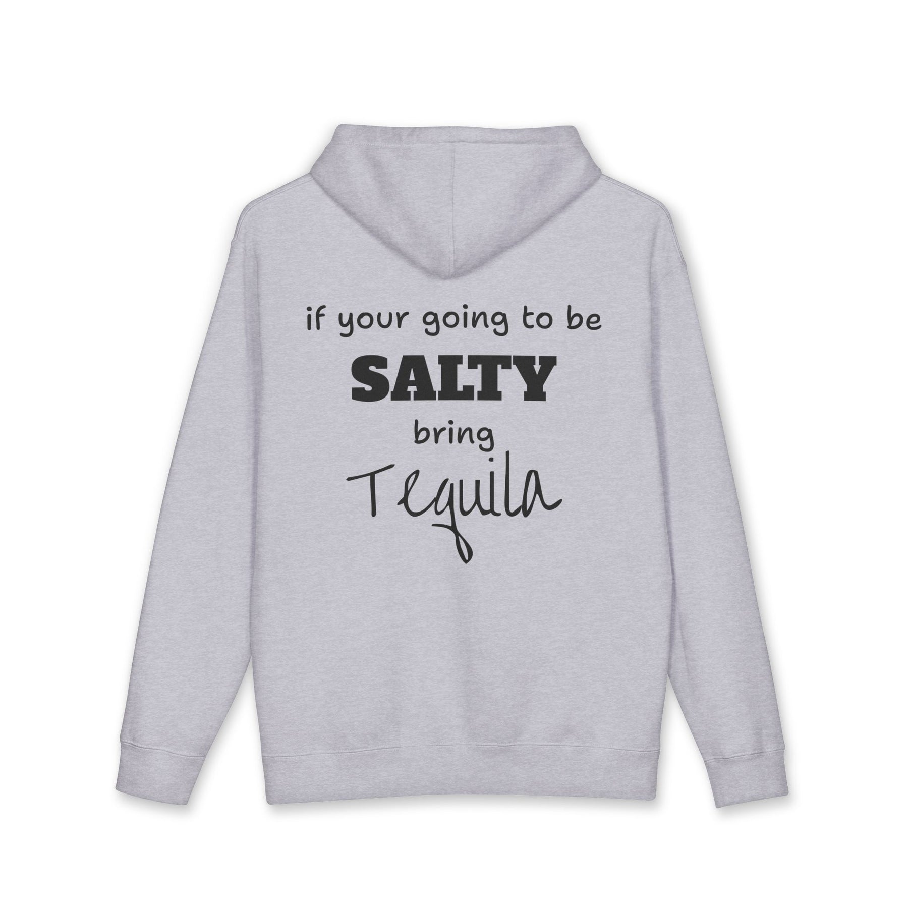 Life's too short for bad vibes and no tequila. Our new favorite hoodie says it all without you having to speak a word. Featuring the cheeky phrase, "If you're going to be salty, bring tequila," this hoodie is your new uniform for nights out, casual get-togethers, and any time you need a good laugh.
